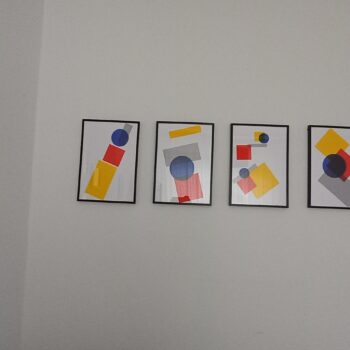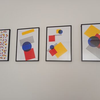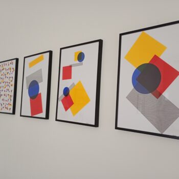 Grafika generatywna. Kompozycje powstały z połączenia programowania i kontrolowanej losowości, dzięki czemu każda praca ma niepowtarzalny układ form.