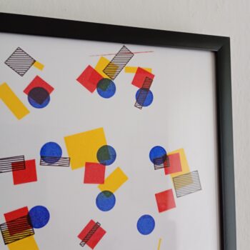 Grafika generatywna. Kompozycje powstały z połączenia programowania i kontrolowanej losowości, dzięki czemu każda praca ma niepowtarzalny układ form.