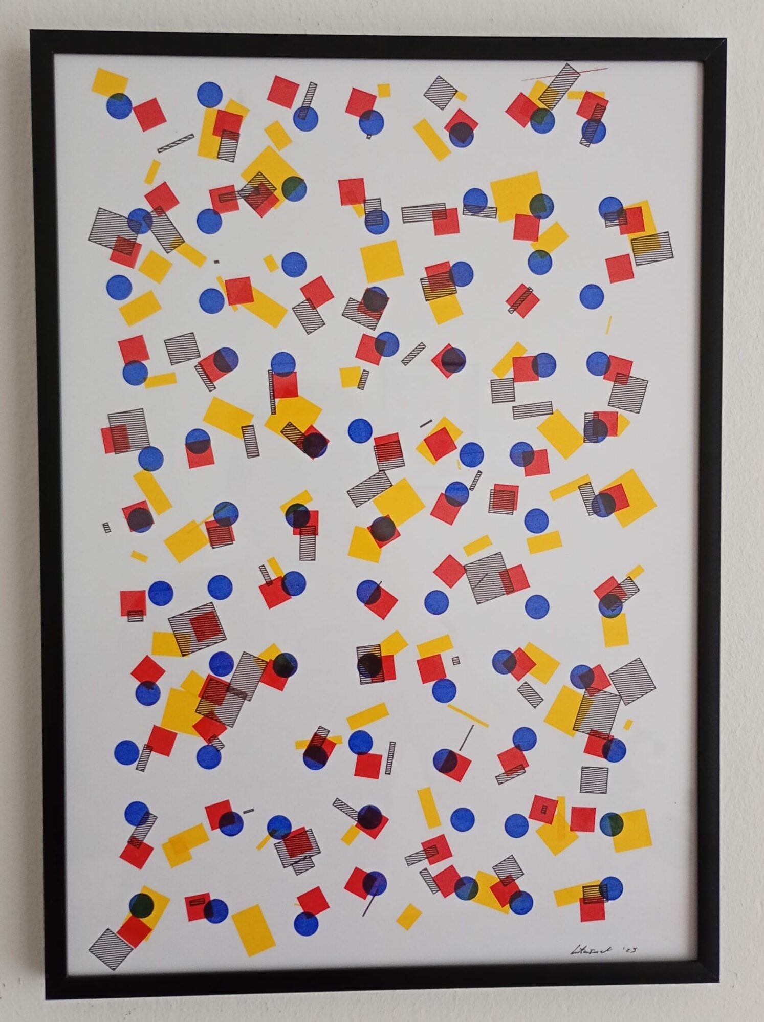 Plany wakacyjne to autorska seria grafik geometrycznych w formacie A3, stworzona przez Piotra Lutosławskiego. Każda z prac powstała w nurcie grafiki generatywnej (generative art), łącząc precyzyjnie zaprogramowane algorytmy z kontrolowaną losowością. Dzięki wprowadzeniu zmiennych takich jak położenie, wielkość czy kąt obrotu figur, każda kompozycja jest unikalna i niepowtarzalna — uzyskanie identycznej konfiguracji w procesie generatywnym jest praktycznie niemożliwe.