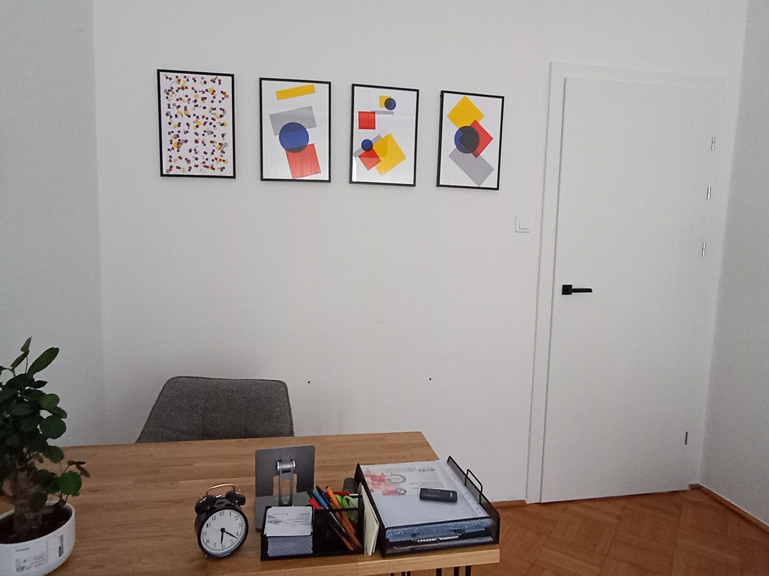 Grafika generatywna. Kompozycje powstały z połączenia programowania i kontrolowanej losowości, dzięki czemu każda praca ma niepowtarzalny układ form.